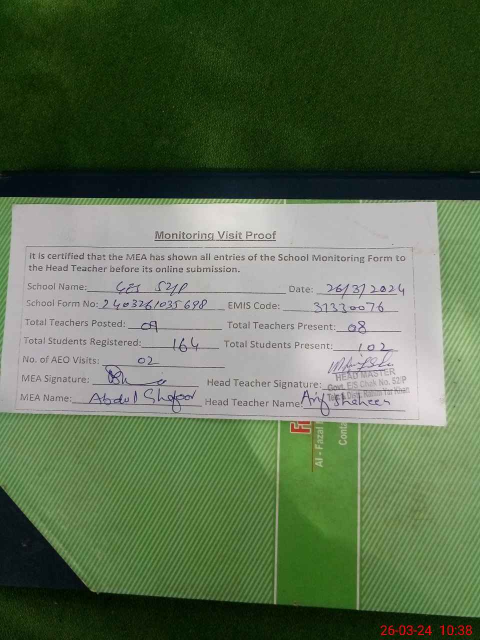 | EMIS Code: 31330076 | Name of School: GES CHAK 52/P | |||
