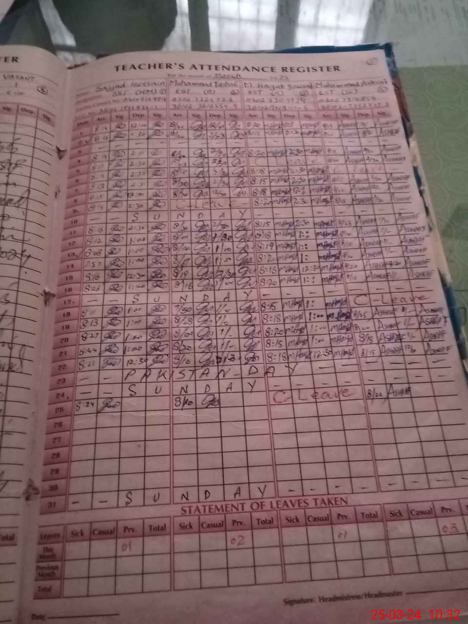 | Name: SA**** HU**** Designation: (School Headmaster's/Headmistress's) S.S.T Phone/Cell Number: 03**** |