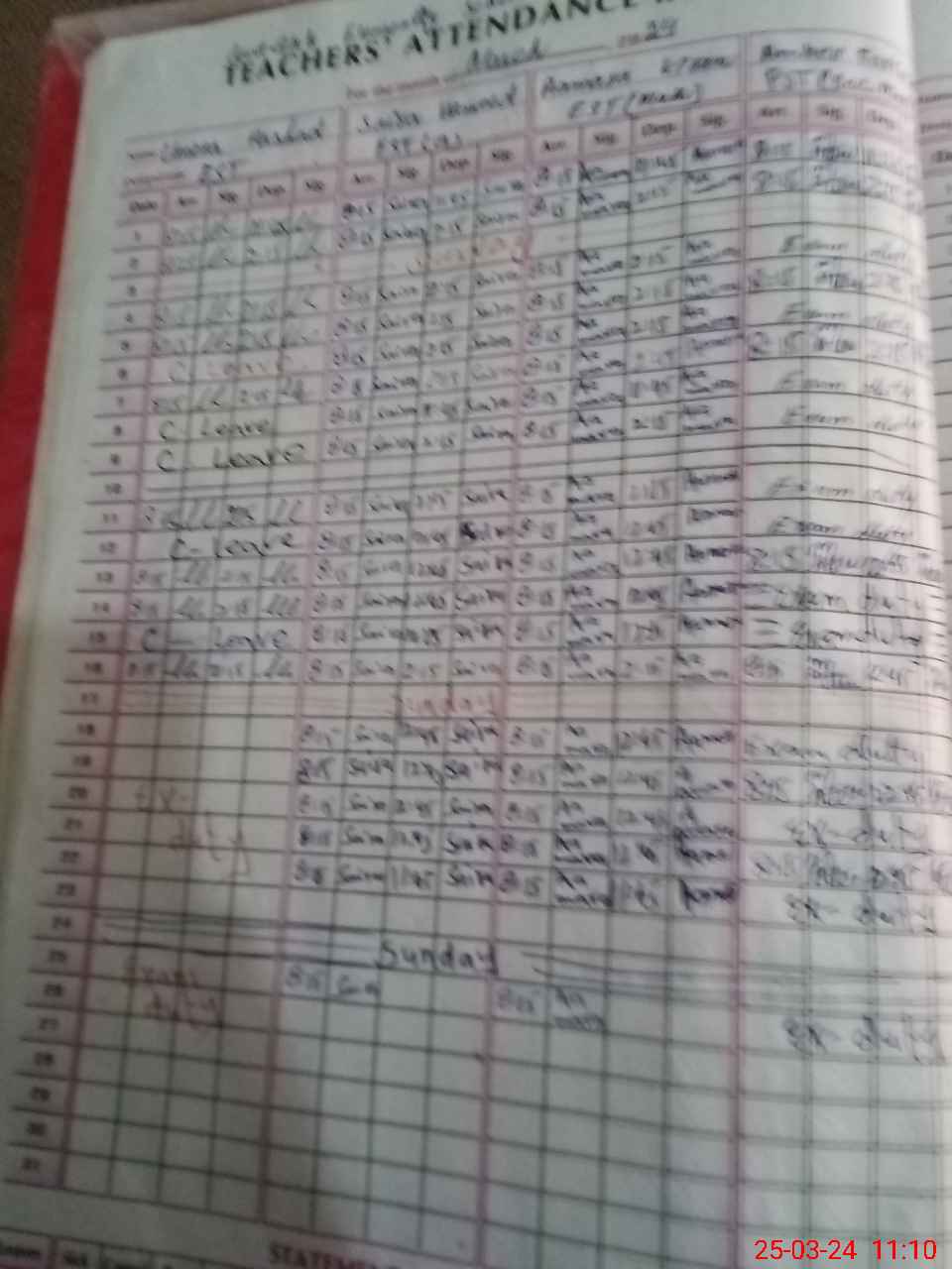 | 36**** | Um**** Ar**** | 3 | 1 | 0 | 0 | 0 | 0 | 0 | 0 | 0 | 0 | 0 | Exam Duty |