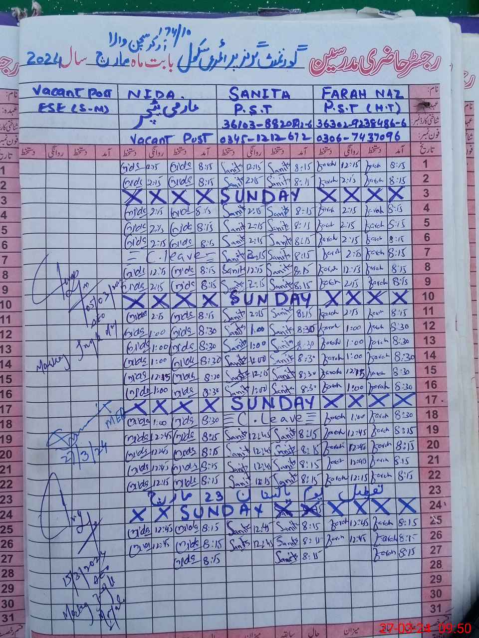 | Name: Fa**** Na**** Designation: (School Headmaster's/Headmistress's) Ese Sci Math Phone/Cell Number: 03**** |