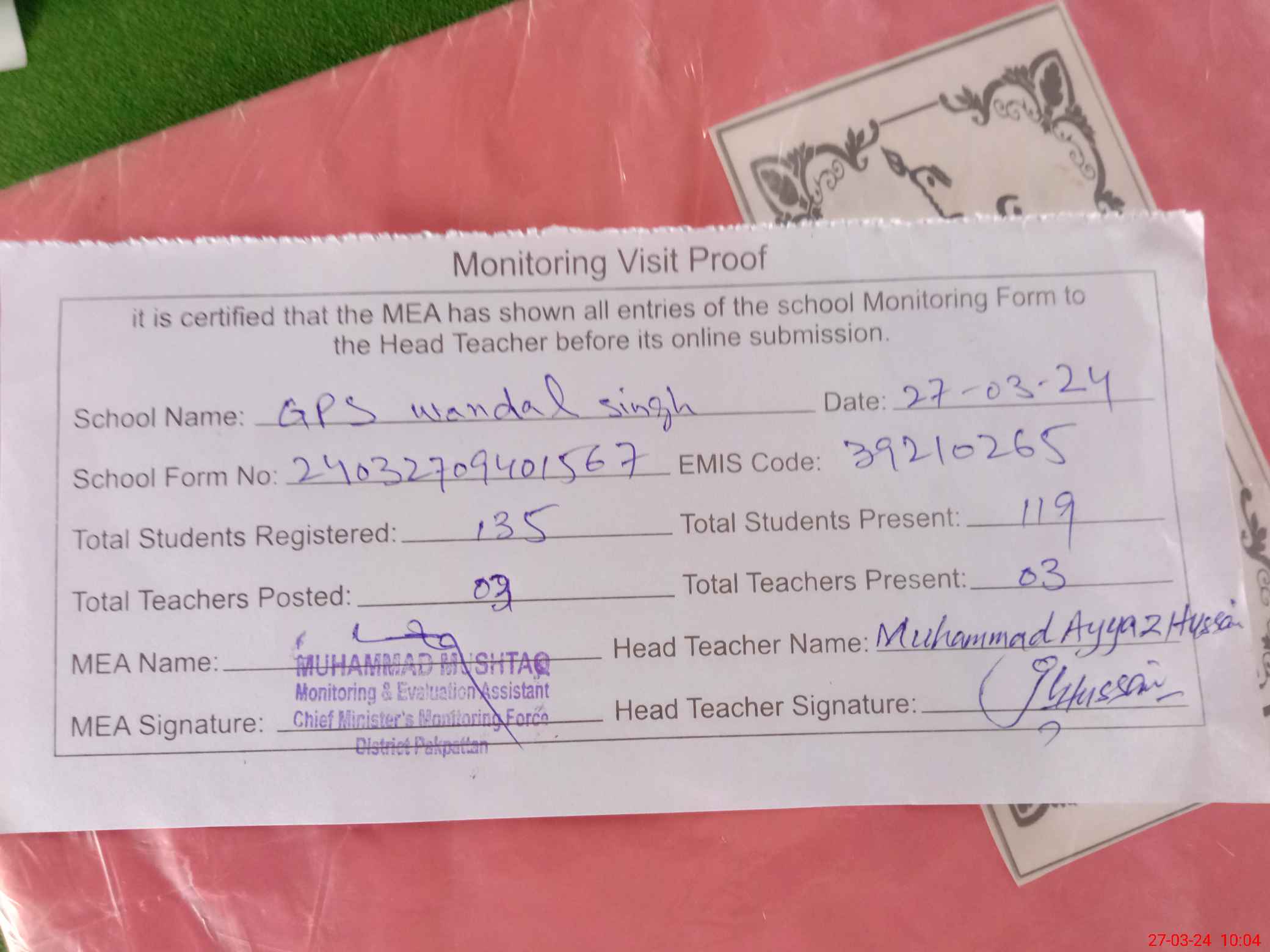 | EMIS Code: 39210265 | Name of School: GPS WANDAL SINGH | |||