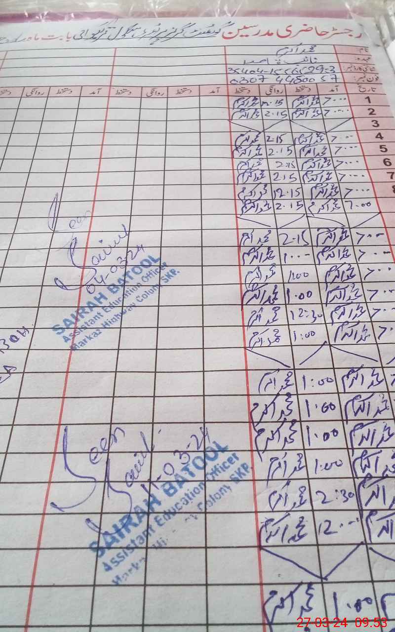 | Name: Ay**** As**** Designation: (School Headmaster's/Headmistress's) PST Phone/Cell Number: 03**** |
