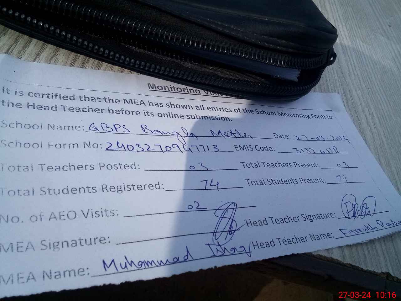 | Name: MU**** Fa**** Ra**** Designation: (School Headmaster's/Headmistress's) PST Phone/Cell Number: 03**** |