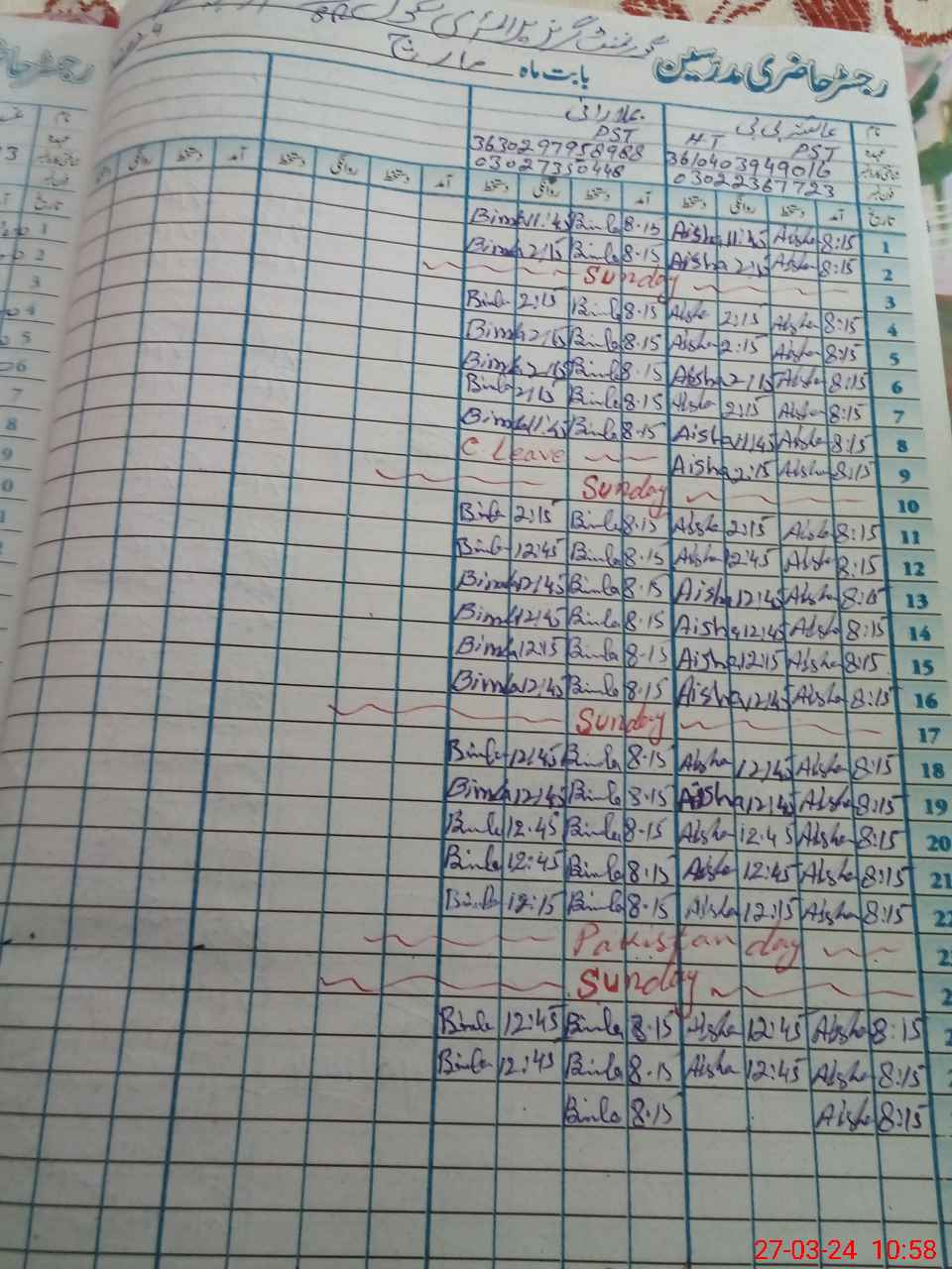 | Name: Ay**** Bi**** Designation: (School Headmaster's/Headmistress's) PST Phone/Cell Number: 03**** |
