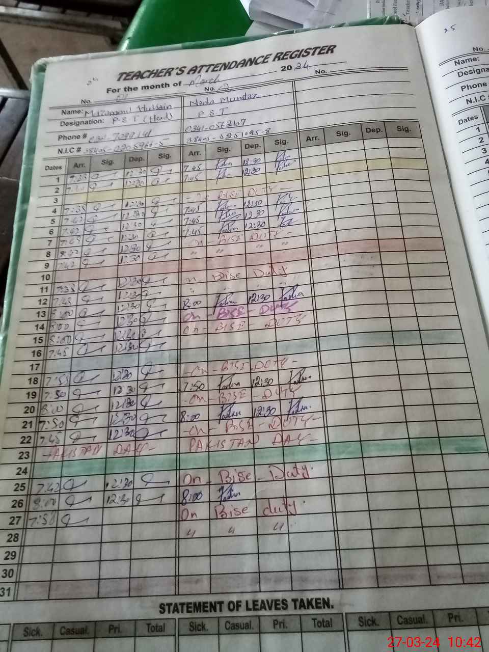 | Name: Mu**** Hu**** Designation: (School Headmaster's/Headmistress's) PST Phone/Cell Number: 03**** |