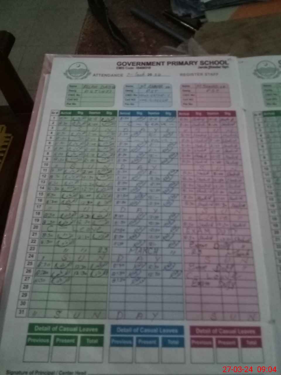 | 38**** | Mu**** Sh**** Iq**** | 1 | 1 | 0 | 0 | 0 | 0 | 0 | 0 | 0 | 0 | 0 | Exam Duty |