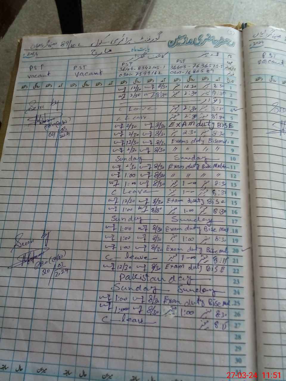 | Name: KA**** GU**** Designation: (School Headmaster's/Headmistress's) PST Phone/Cell Number: 03**** |
