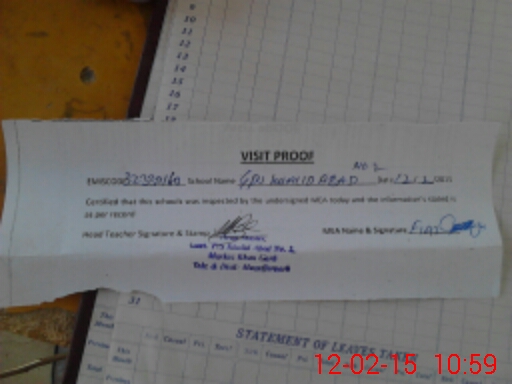 | Certified that this School was Inspected by the Undersigned MEA/DMO Today and the Information Stated Above is as Per Record. | |||||