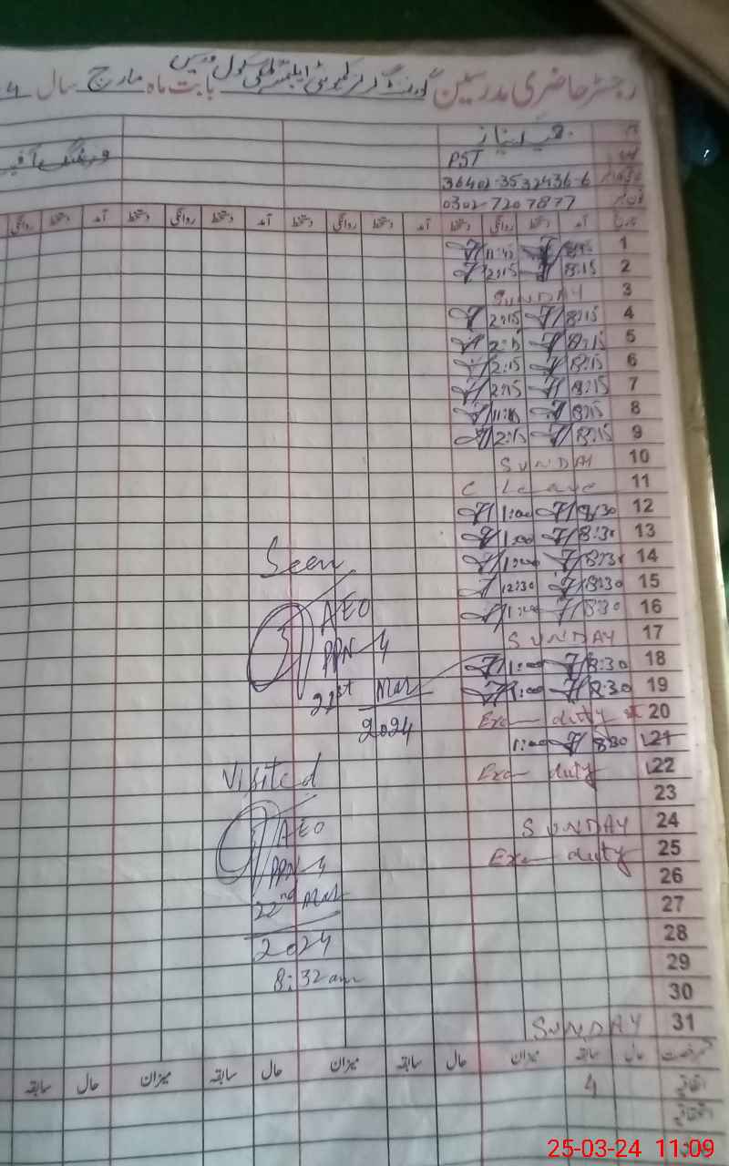 | Name: Mu**** Sa**** Designation: (School Headmaster's/Headmistress's) SST (English) Phone/Cell Number: 03**** |