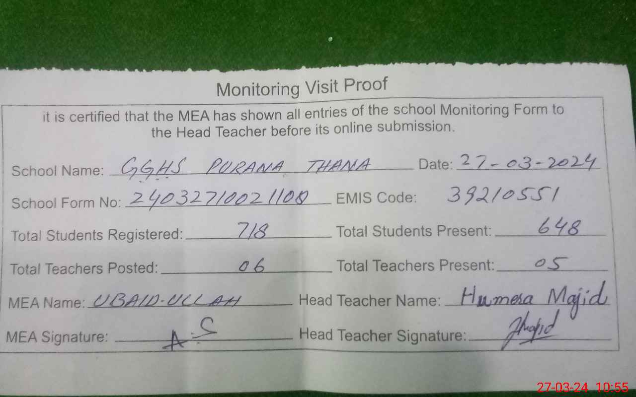 | EMIS Code: 39210551 | Name of School: GGHS PURANA THANA | |||
