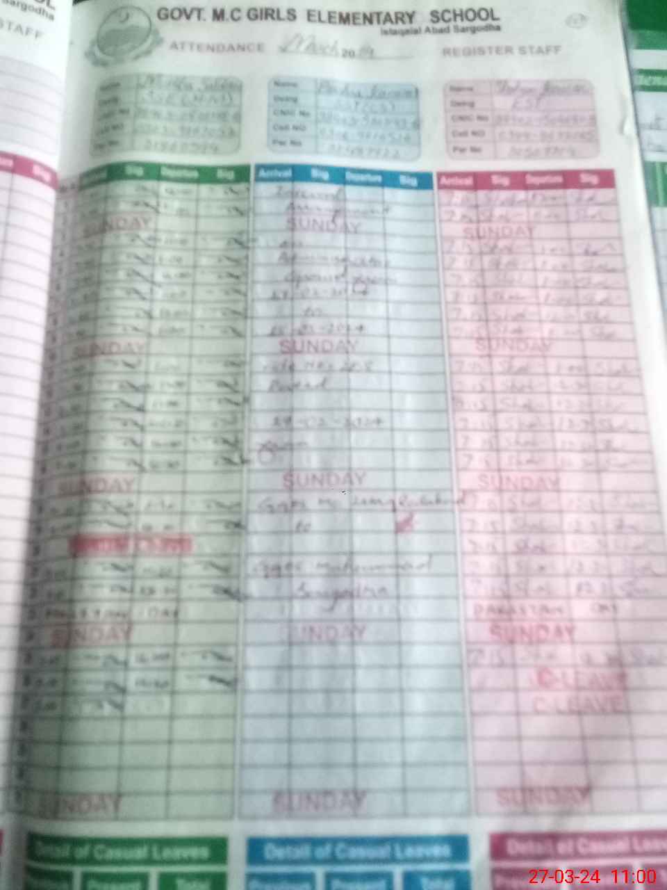 | CNIC | Full Name | Designation | R/C | Absence During Last Calender Month |