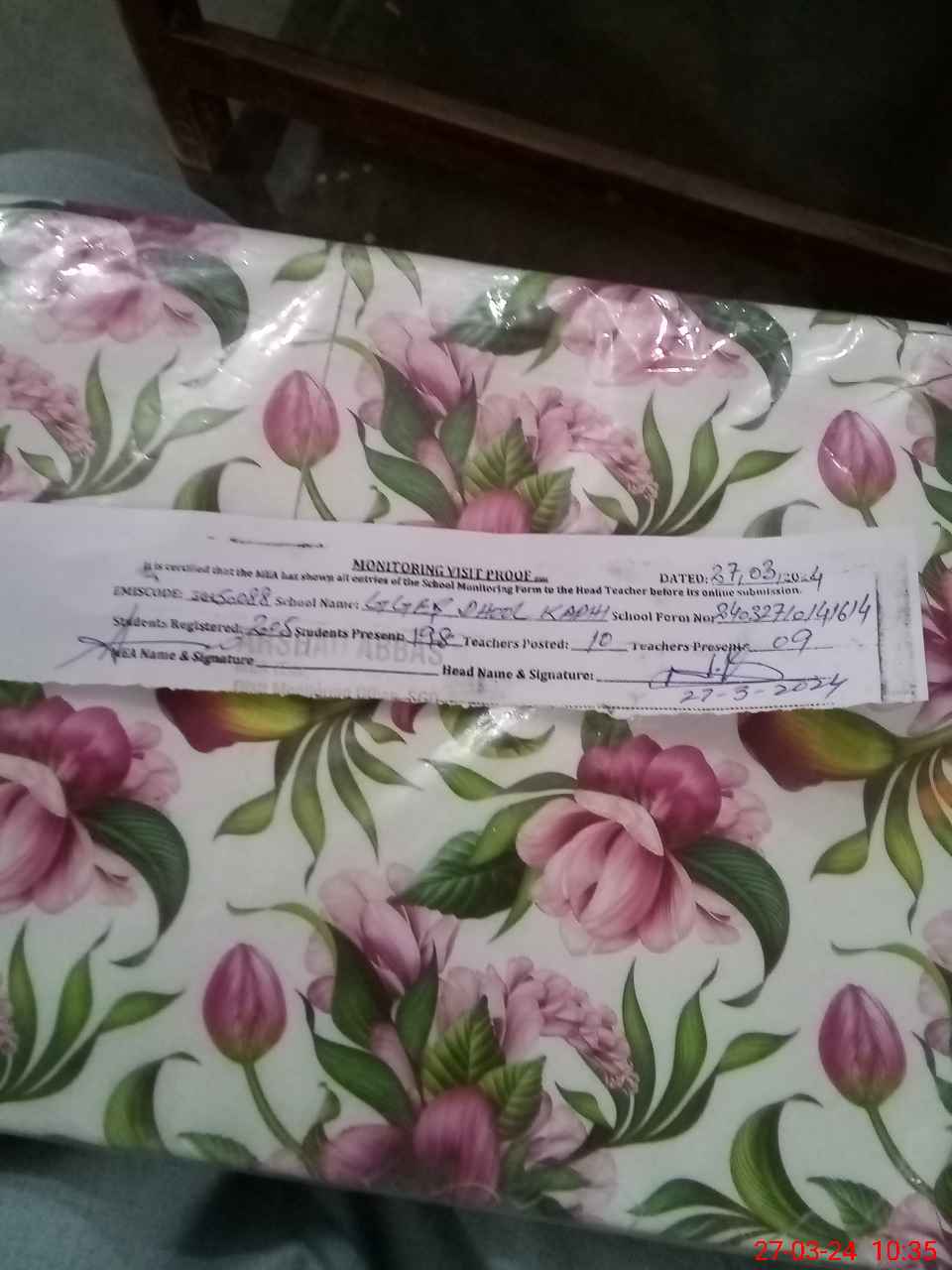 | Name: UM**** KA**** Designation: (School Headmaster's/Headmistress's) EST Phone/Cell Number: 03**** |