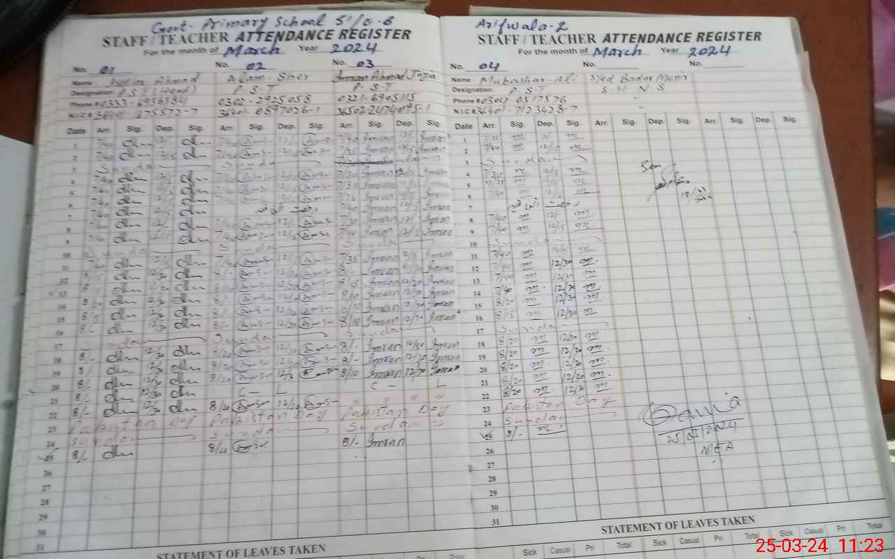 | Name: IS**** AH**** Designation: (School Headmaster's/Headmistress's) PST Phone/Cell Number: 03**** |