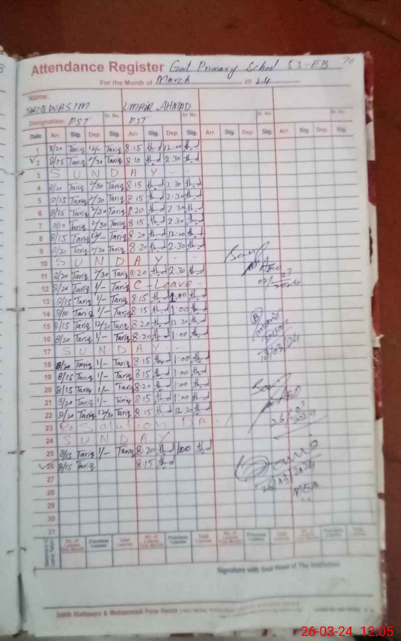 | Name: TA**** WA**** Designation: (School Headmaster's/Headmistress's) PST Phone/Cell Number: 03**** |