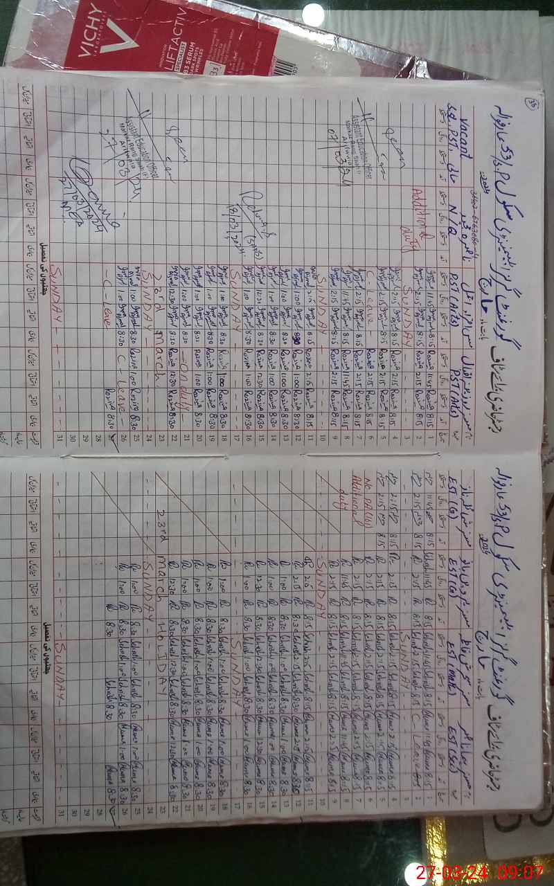 | CNIC | Full Name | Designation | R/C | Absence During Last Calender Month |