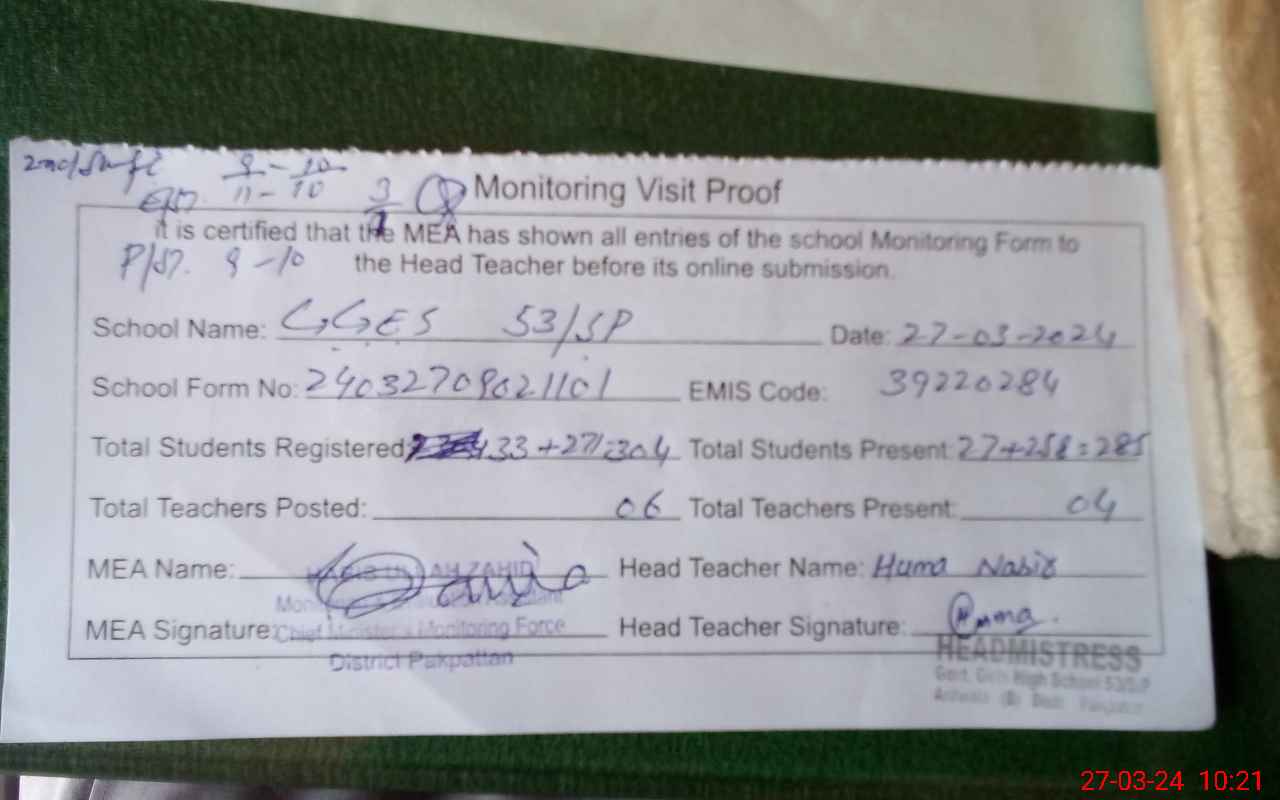 | EMIS Code: 39220284 | Name of School: GGES 53 SP POST OFFICE JEVEN SHAH | |||