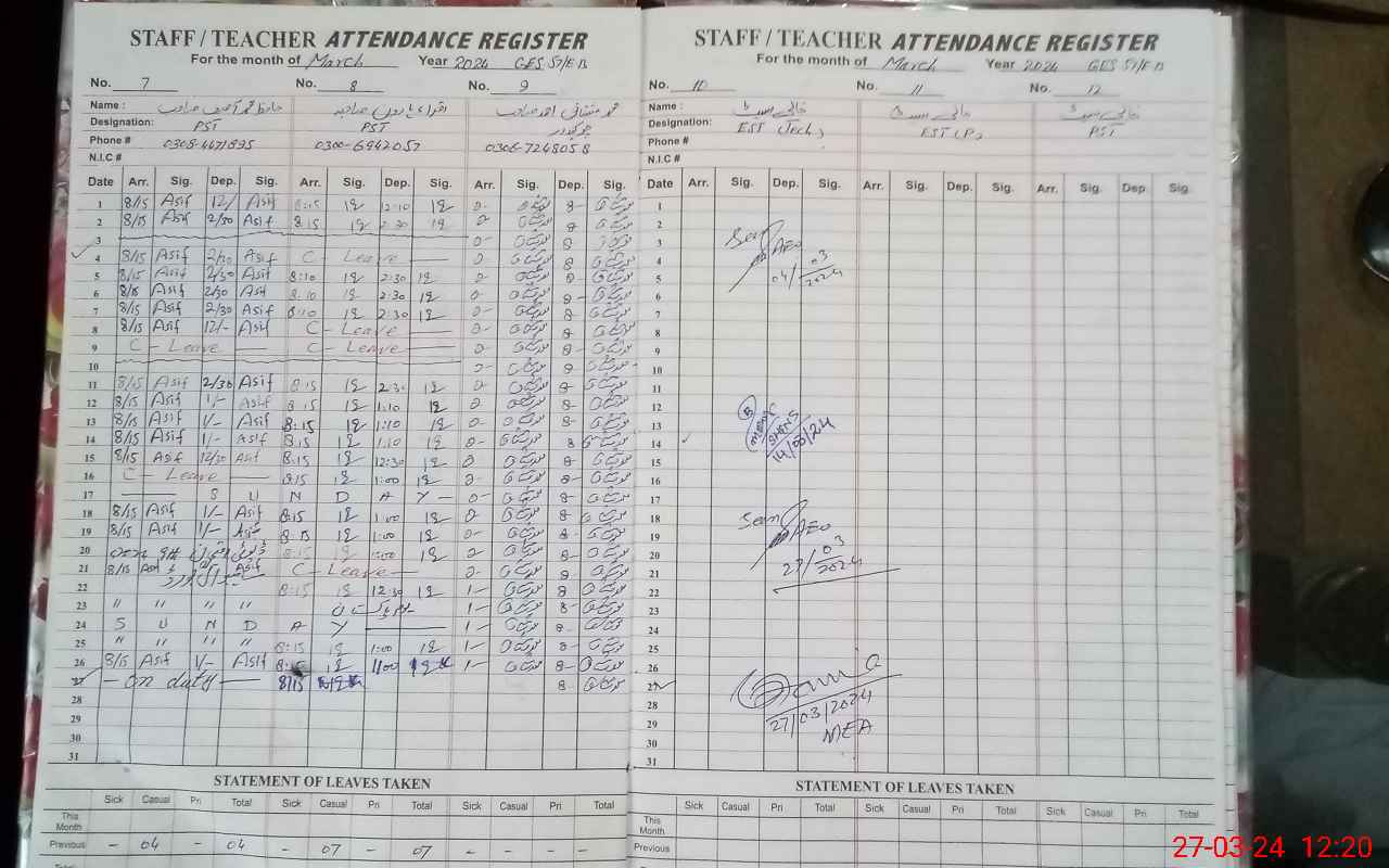| 36**** | Ha**** Mu**** As**** | PST | Regular | 0 | 0 | 0 | 0 | 0 | 0 | 0 | 0 | 0 | Exam Duty |
