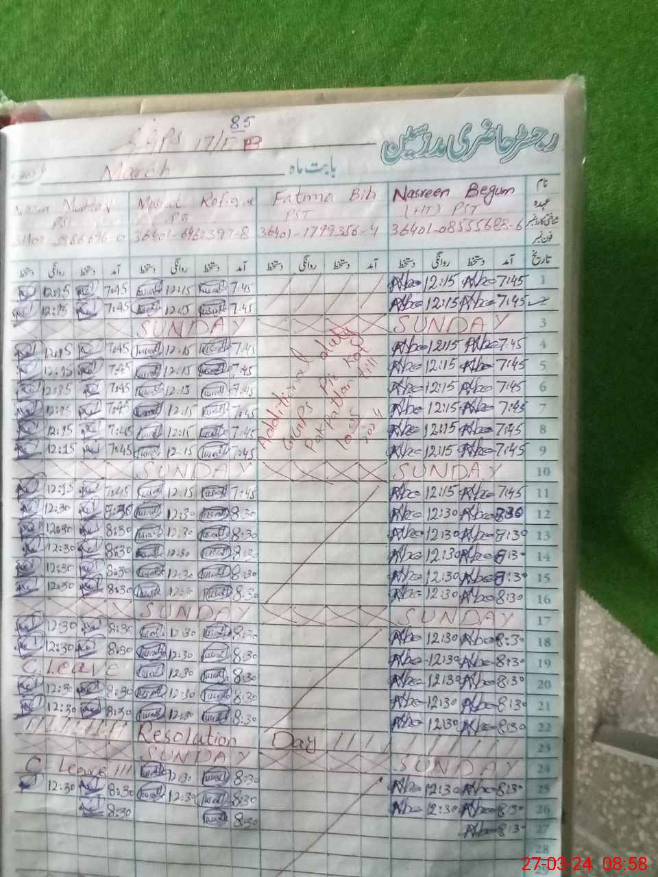 | 36**** | Ay**** Za**** | NQ | 0 | 0 | 0 | 0 | 0 | 0 | 0 | 0 | 0 | Absent (Un-Authorized) | |