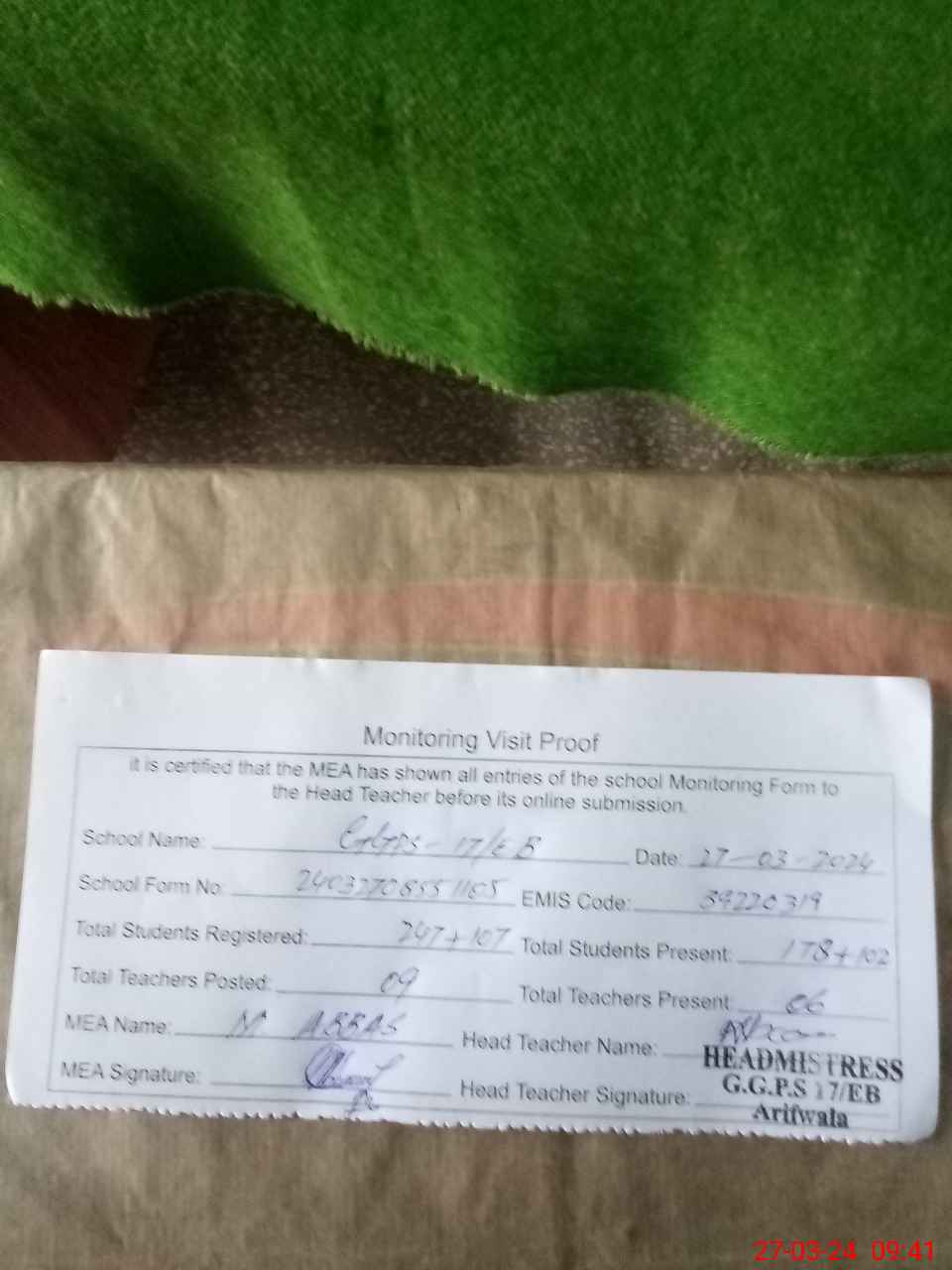 | EMIS Code: 39220319 | Name of School: GGES 17 EB | |||