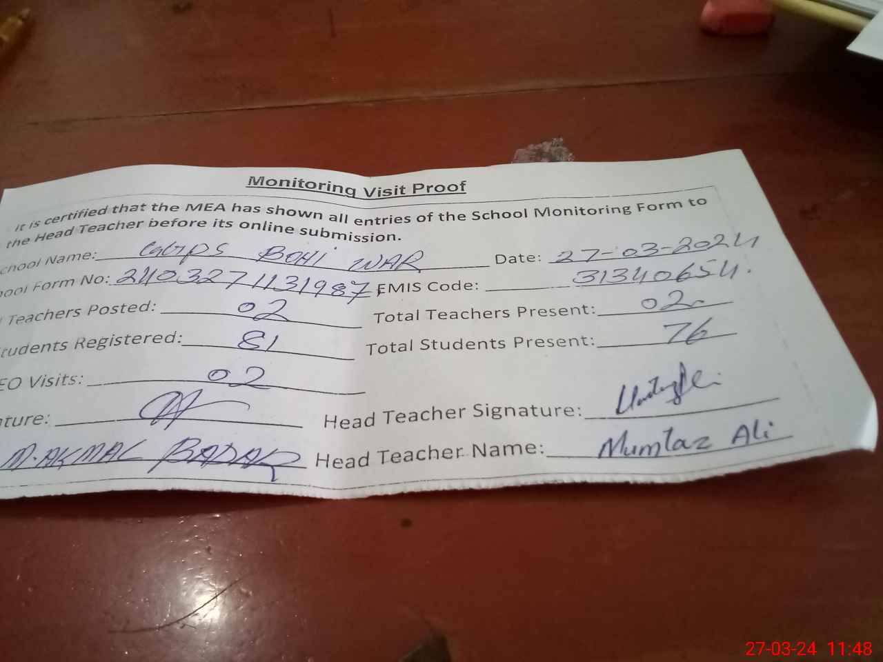 | EMIS Code: 31340654 | Name of School: GGPS BOHI WARR | |||