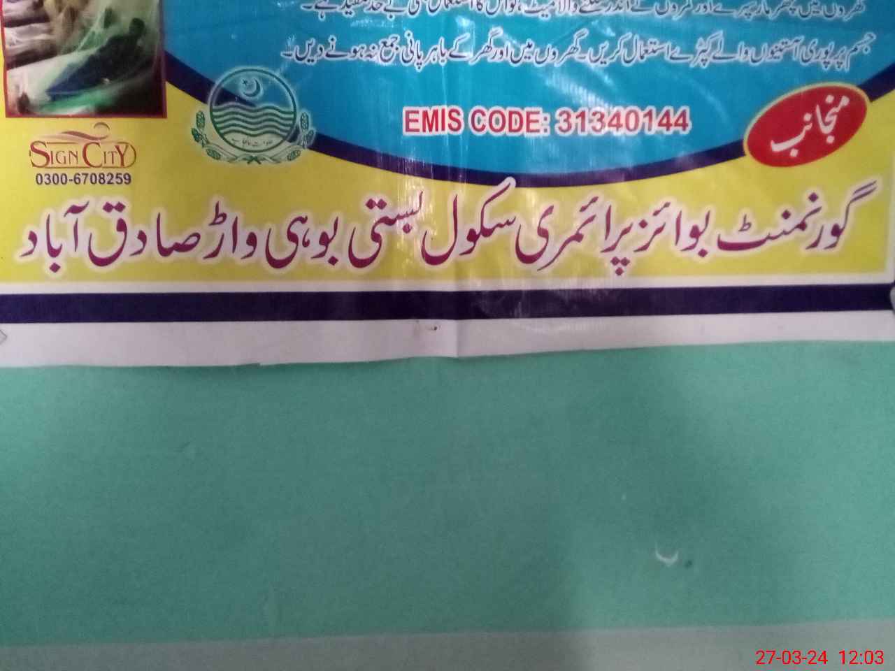 | EMIS Code: 31340144 | Name of School: GPS BASTI BOOHI WAR | |||
