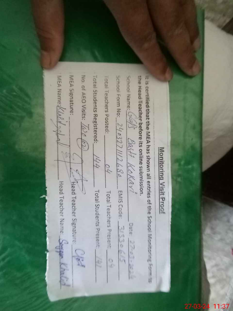 | EMIS Code: 31330615 | Name of School: GGPS BAST KOKARI | |||