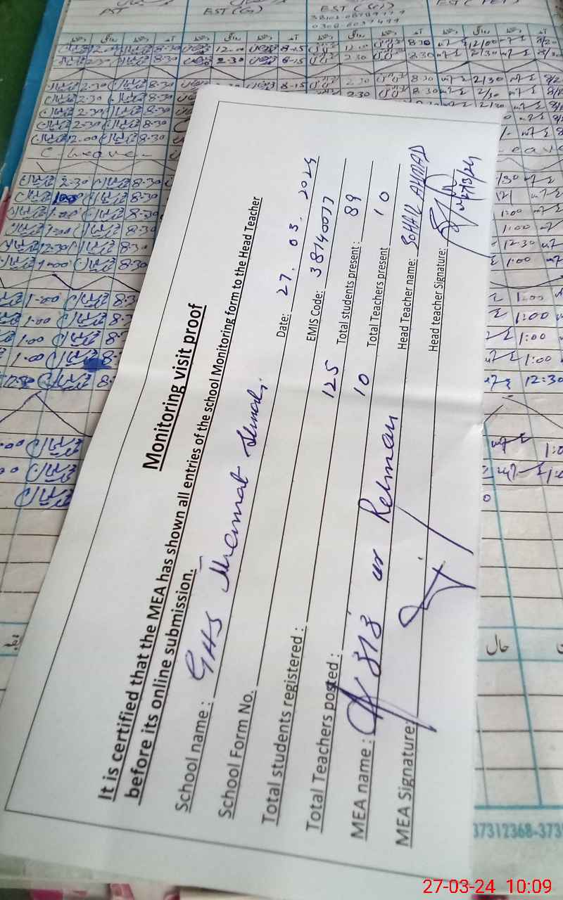 | EMIS Code: 38140017 | Name of School: GHS JHAMMAT SHUMALI | |||