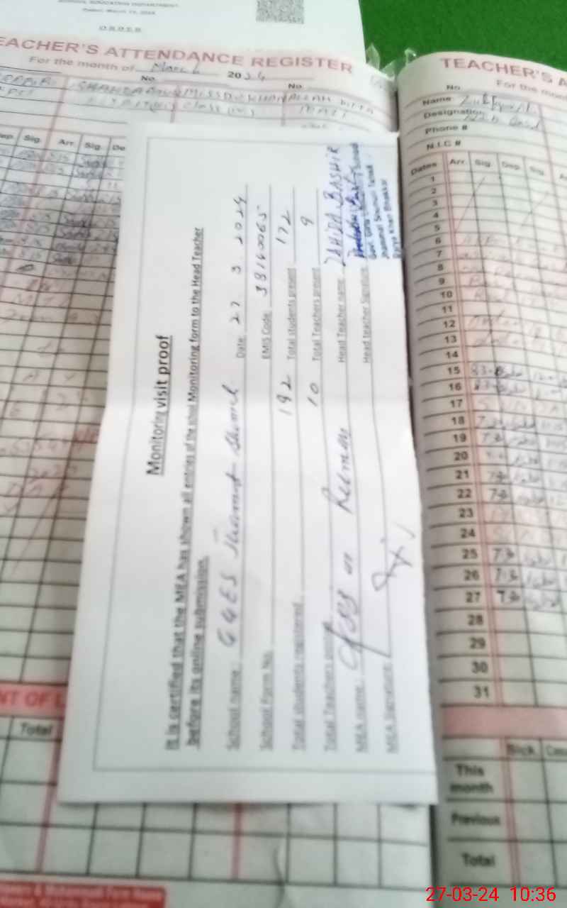 | Attendance Register | Head Teacher | MEA with School | Visit Proof |