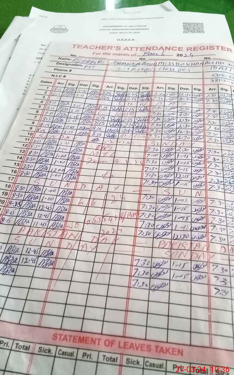 | Name: ZA**** BA**** Designation: (School Headmaster's/Headmistress's) S.S.T.(Arts) Phone/Cell Number: 03**** |