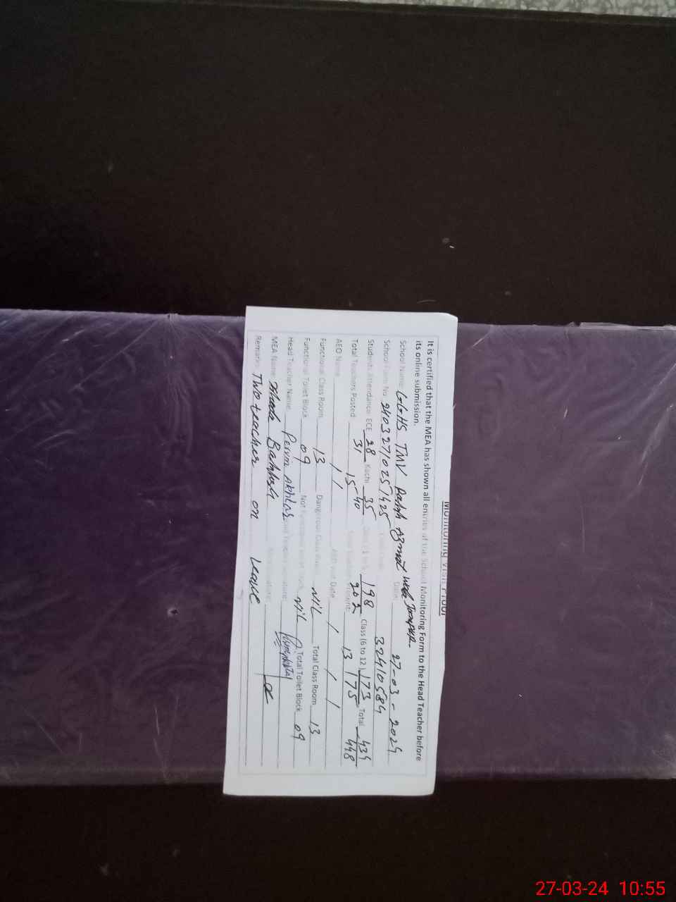 | Attendance Register | Head Teacher | MEA with School | Visit Proof |