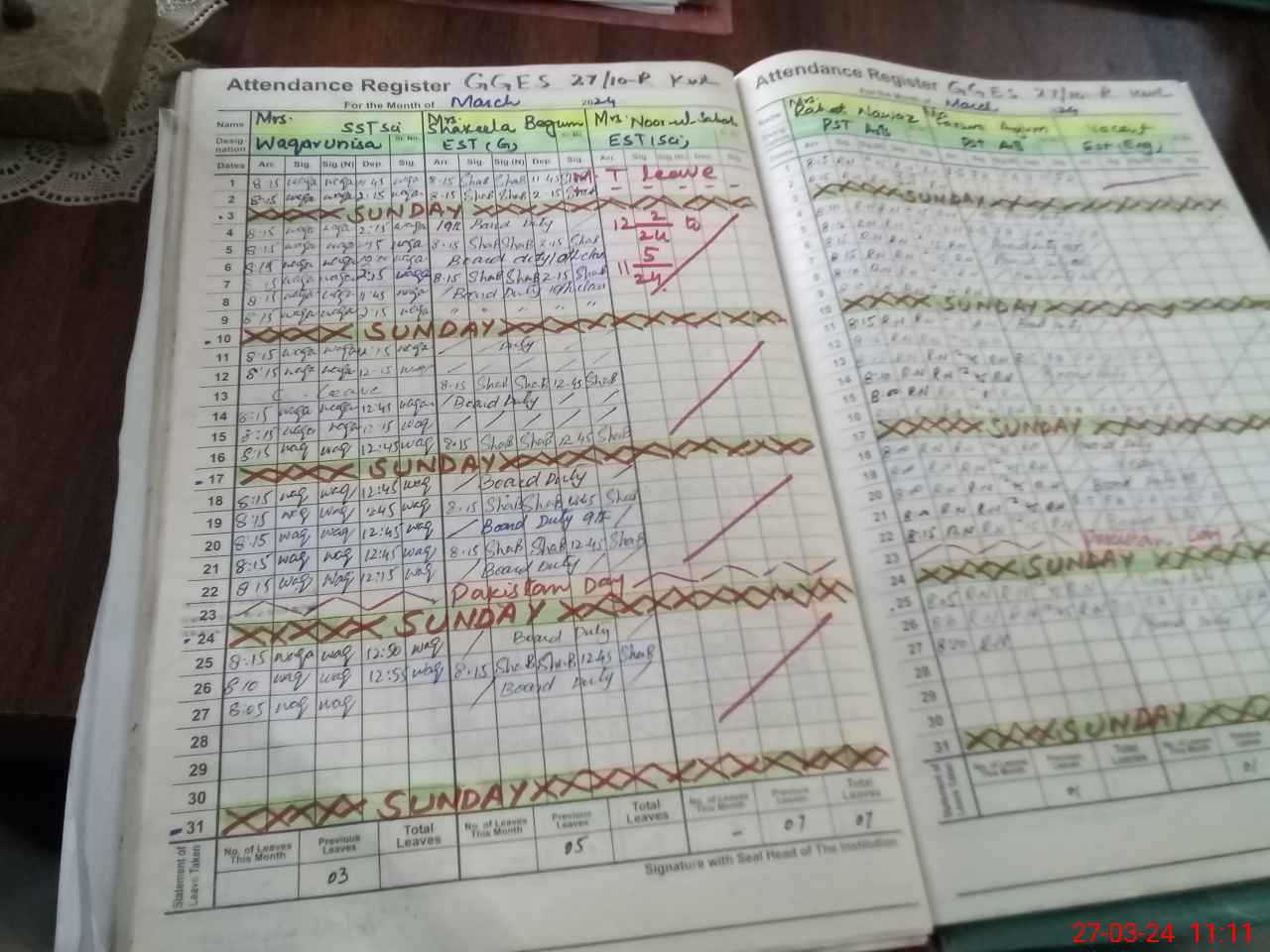 | 36**** | Sh**** Be**** | Regular | 2 | 0 | 0 | 0 | 0 | 0 | 0 | 0 | 2 | Exam Duty | |