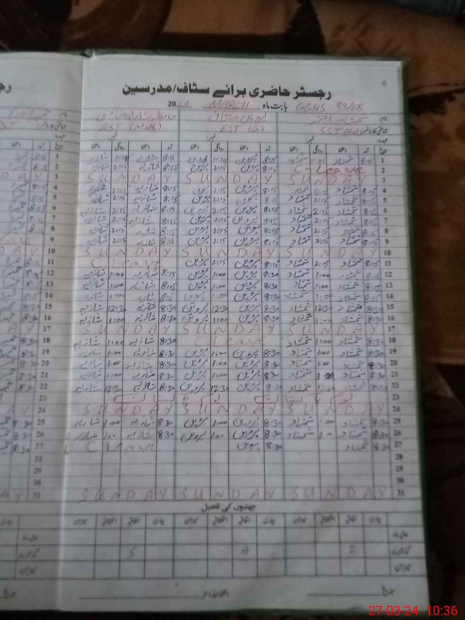 | Name: SH**** AK**** Designation: (School Headmaster's/Headmistress's) S.S.T.(GENERAL) Phone/Cell Number: 03**** |