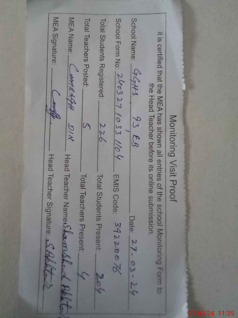 | EMIS Code: 39220076 | Name of School: GGHS 93 EB | |||