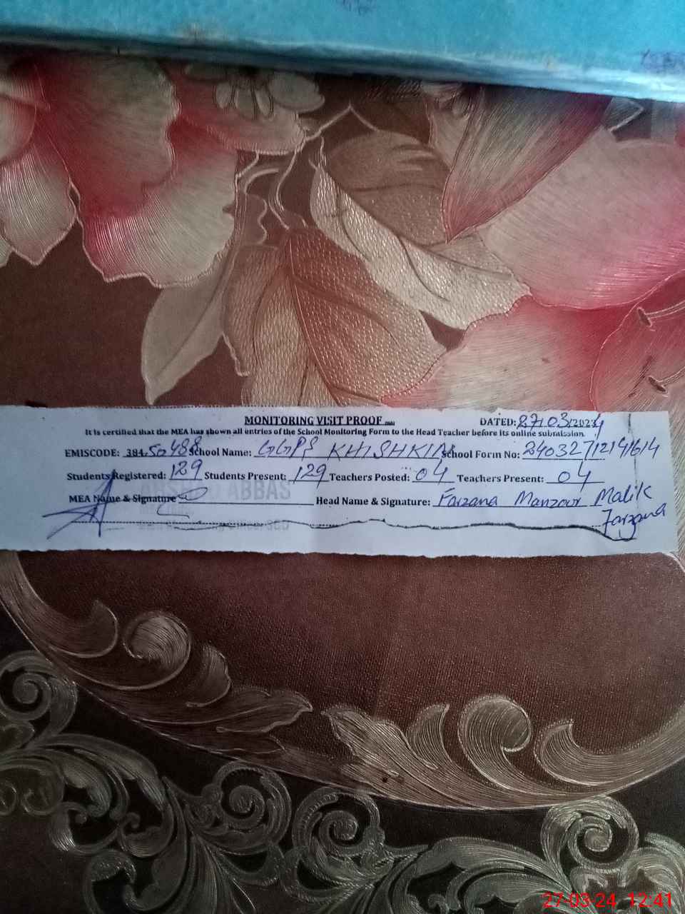 | EMIS Code: 38450488 | Name of School: GGPS KHISHKAN | |||