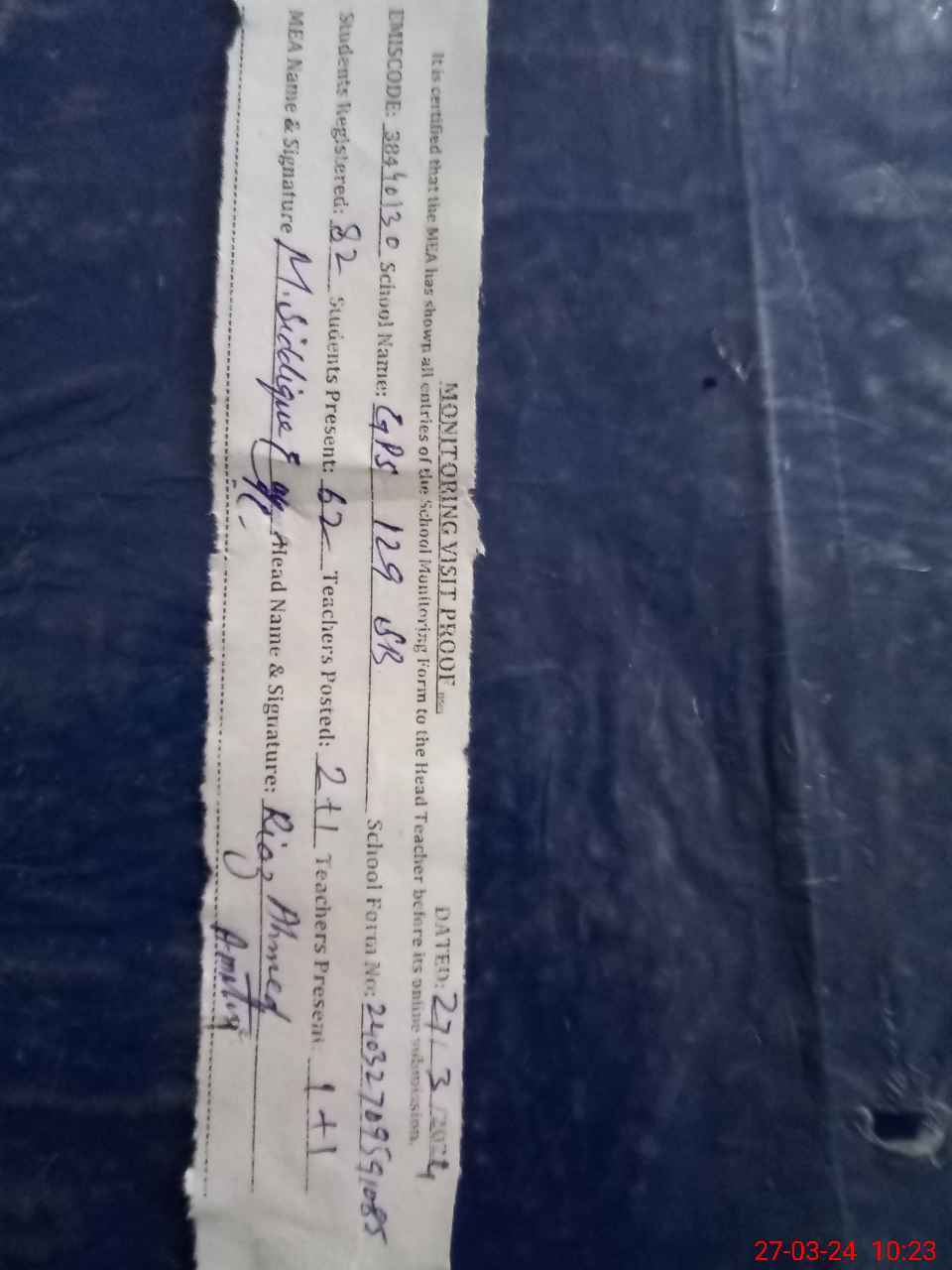 | EMIS Code: 38440130 | Name of School: GPS CHAK NO.129 SB | |||
