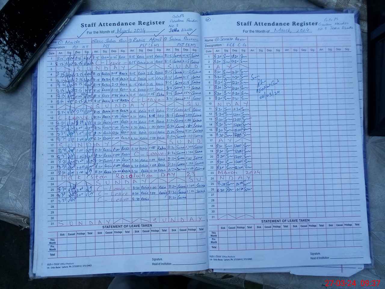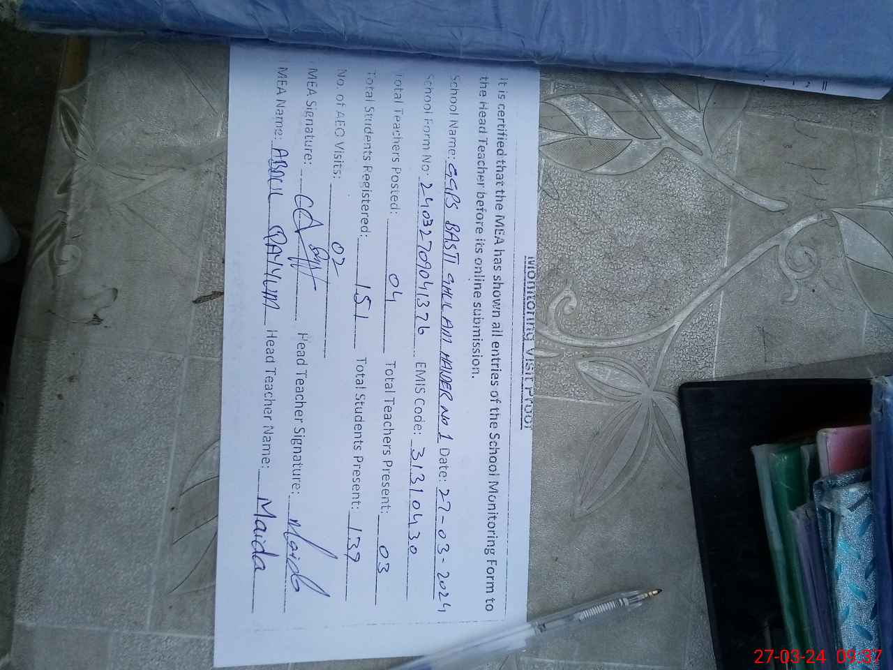 | Name: Ma**** Designation: (School Headmaster's/Headmistress's) PST Phone/Cell Number: 03**** |