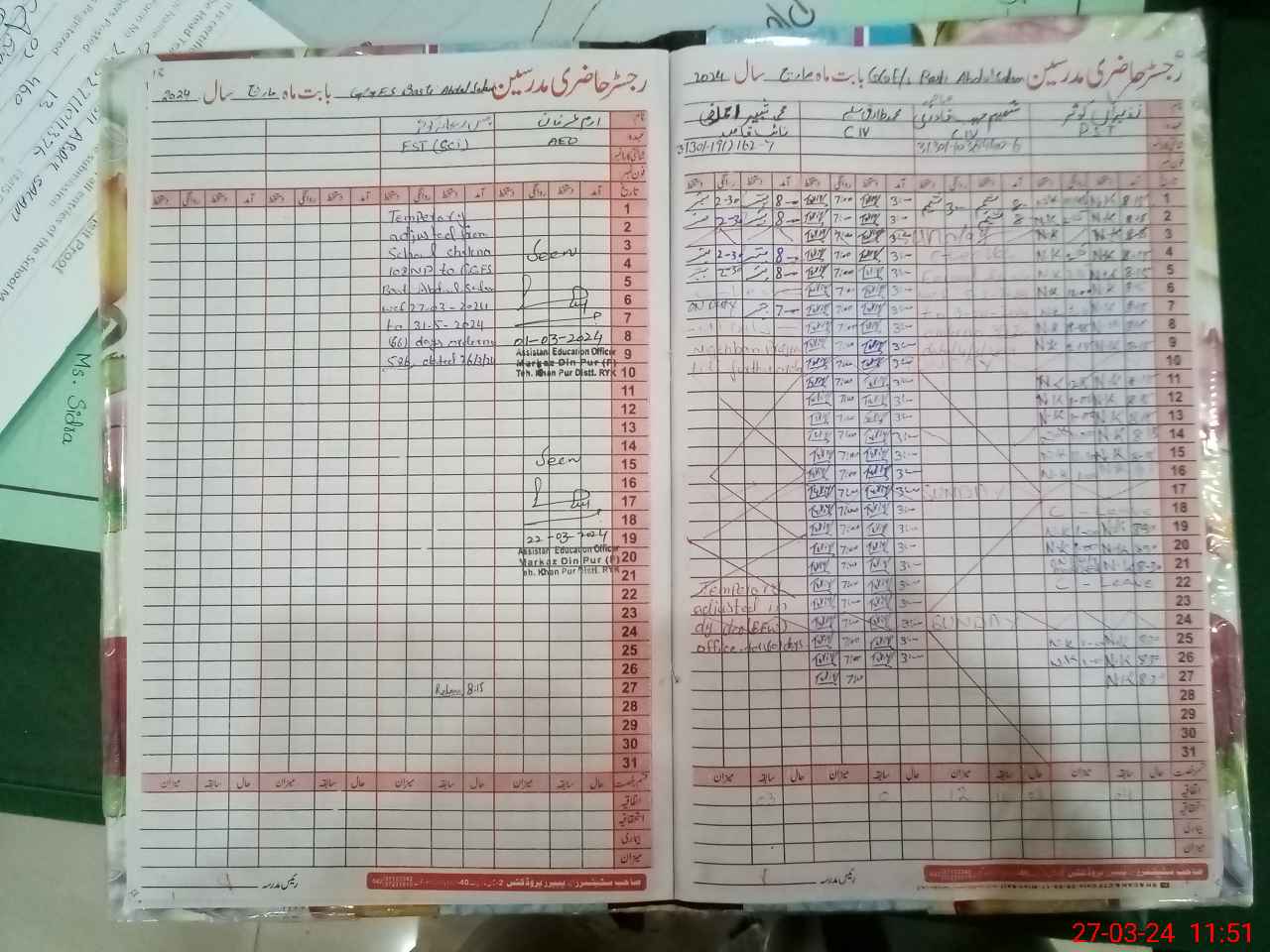 | 31**** | MSh**** Ah**** | N QASID | Regular | 0 | 0 | 10 | 0 | 0 | 0 | 0 | 0 | 0 | Absent (Un-Authorized) |