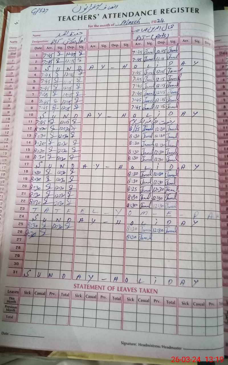 | Name: JA**** UDDI**** Designation: (School Headmaster's/Headmistress's) PST Phone/Cell Number: 03**** |