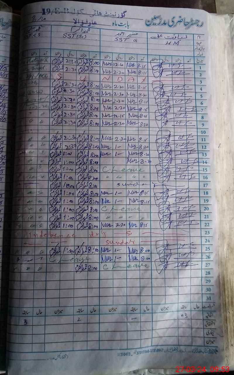| 36**** | Gh**** Al**** Na**** | Regular | 0 | 0 | 0 | 0 | 0 | 0 | 0 | 0 | 0 | Exam Duty | |