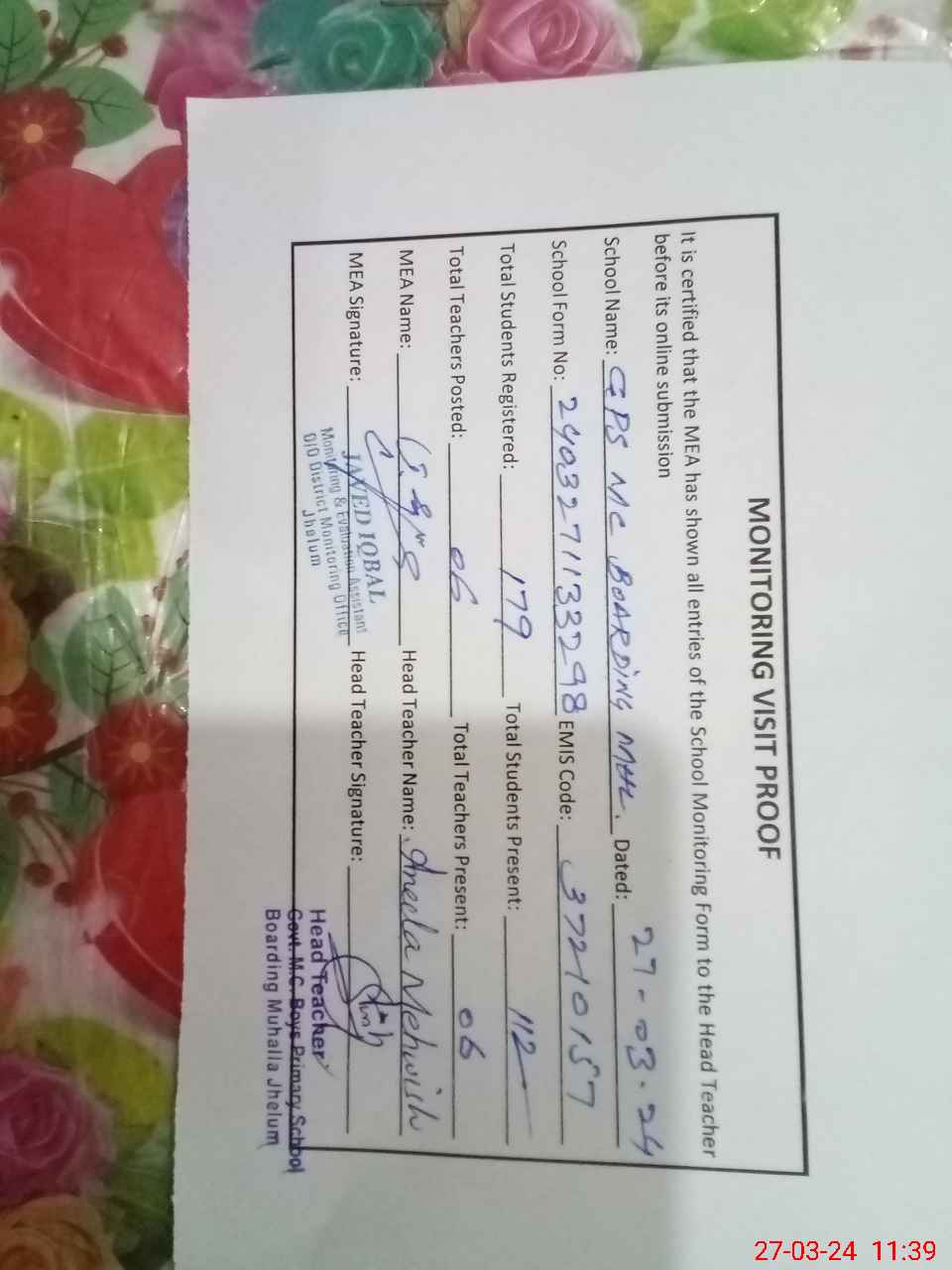 | EMIS Code: 37210157 | Name of School: GPS MC BOARDING MOHALLAH JHELUM | |||
