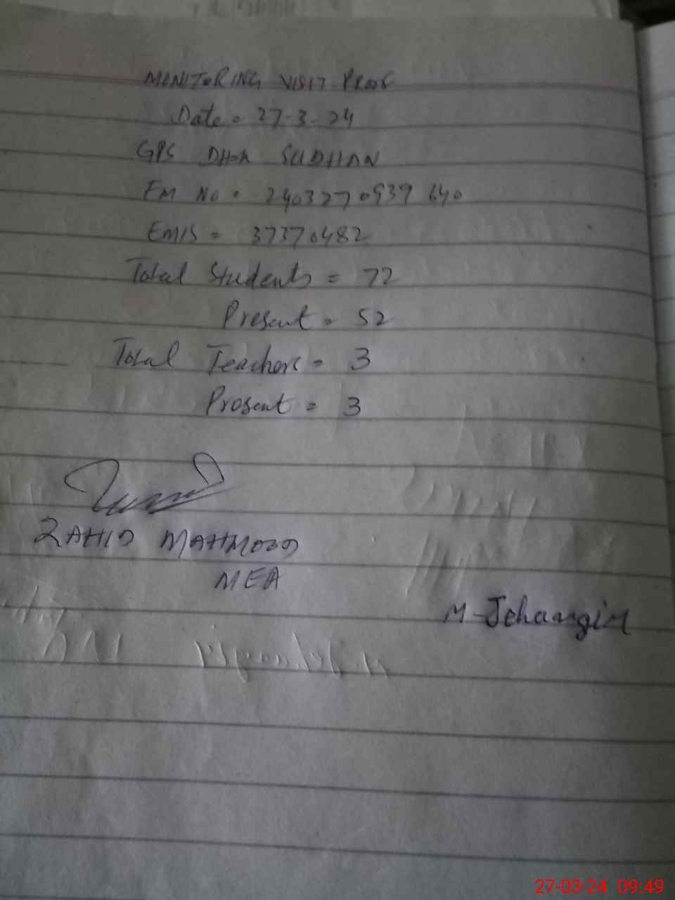 | Name: Mu**** Ja**** Designation: (School Headmaster's/Headmistress's) PST Phone/Cell Number: 03**** |