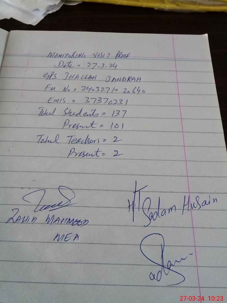 | EMIS Code: 37370231 | Name of School: GPS JHELLA JANDRAH | |||