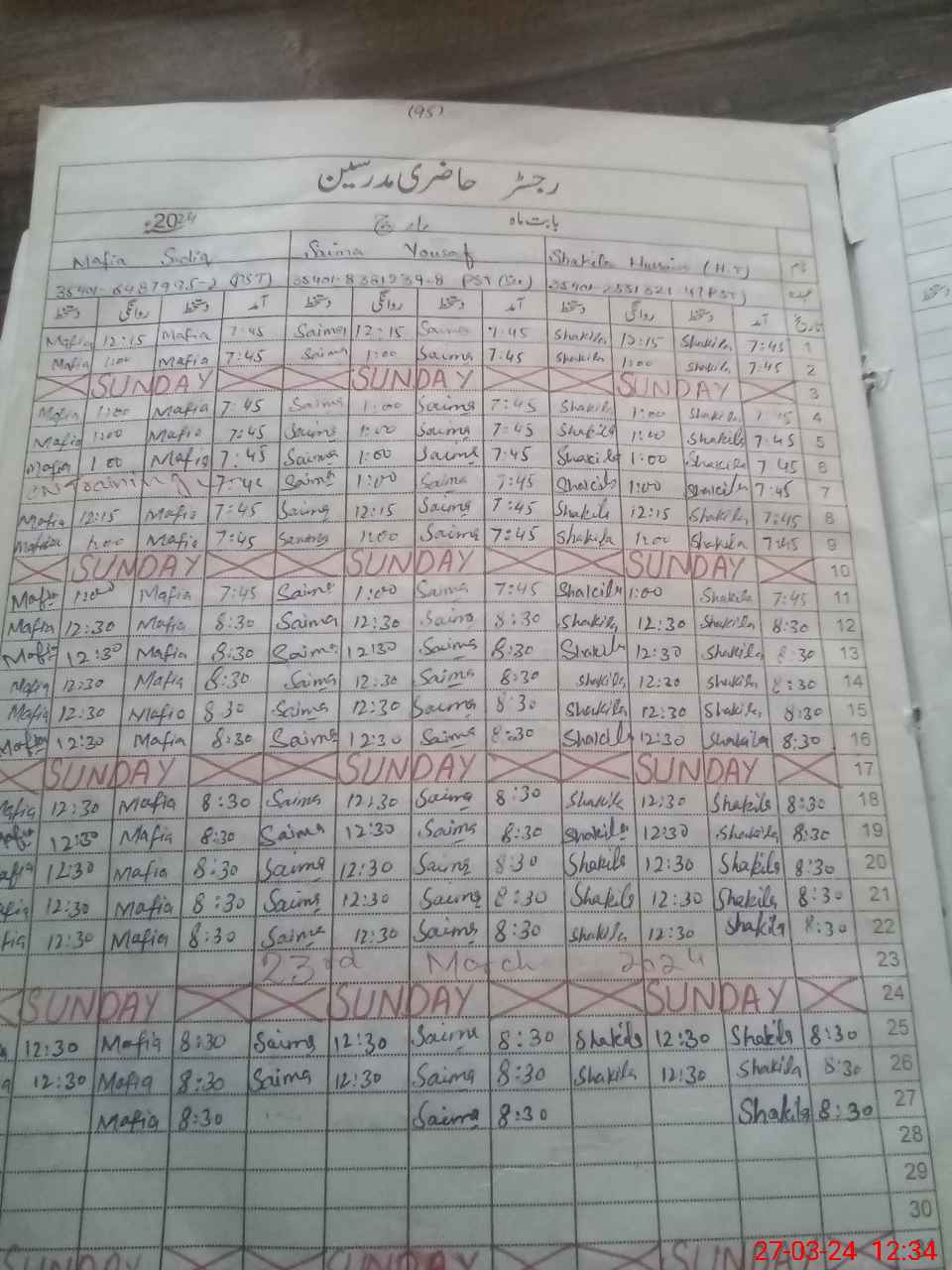 | 35**** | Ay**** Si**** | PST | Regular | 0 | 0 | 0 | 0 | 0 | 0 | 0 | 0 | 0 | Exam Duty |