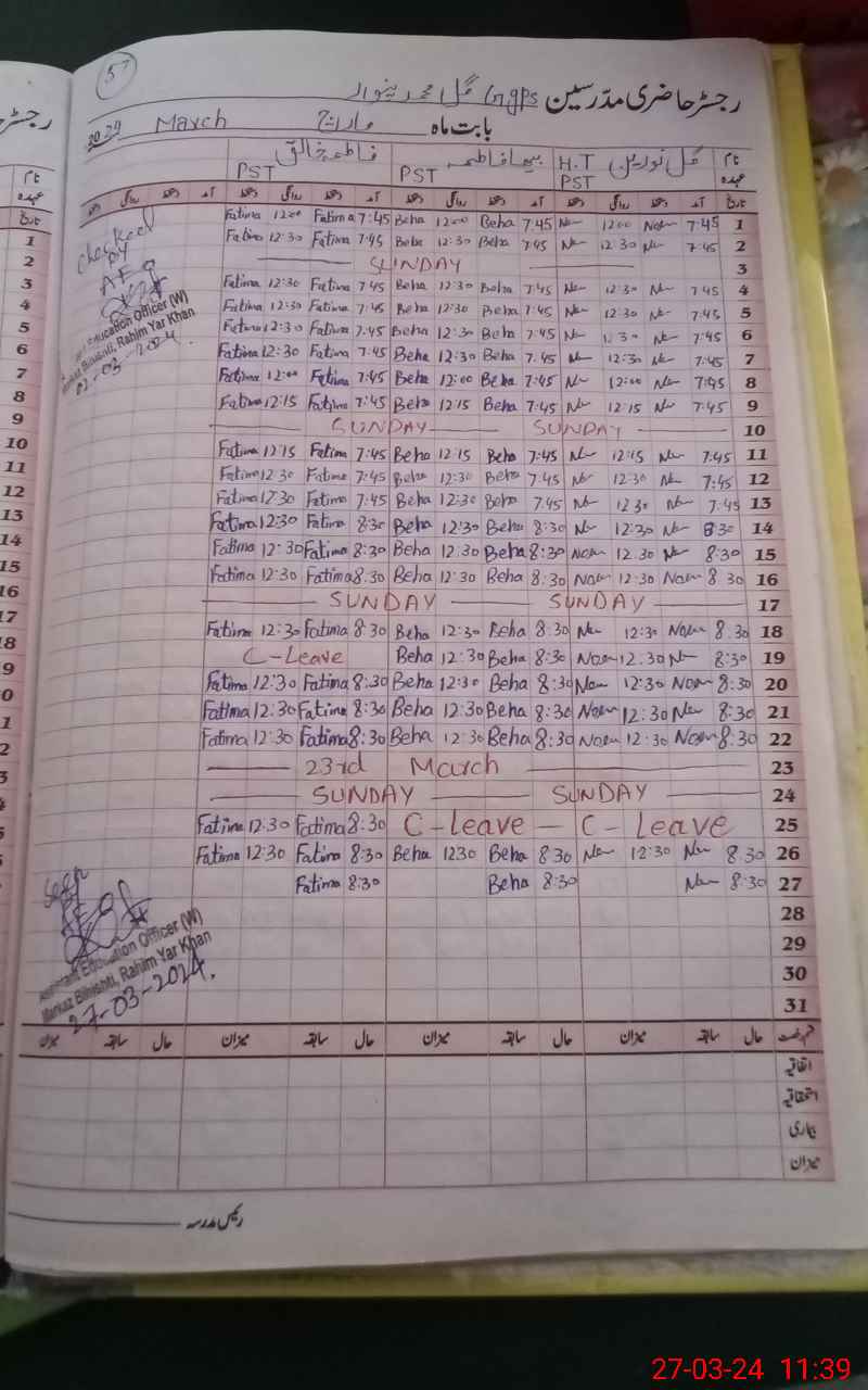 | District: RAHIMYAR KHAN | Tehsil: RAHIMYAR KHAN | Markaz: BAHISHTI-FEMALE | Level: Primary | |