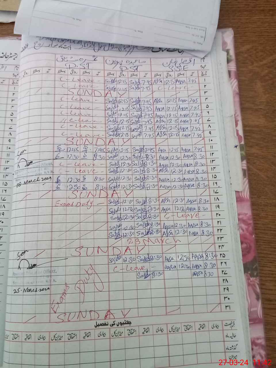 | 31**** | Su**** Mu**** | PST | Regular | 0 | 0 | 0 | 0 | 0 | 0 | 0 | 0 | 0 | Exam Duty |
