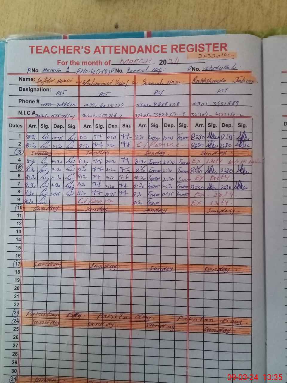 | Name: SA**** HU**** Designation: (School Headmaster's/Headmistress's) PST Phone/Cell Number: 03**** |