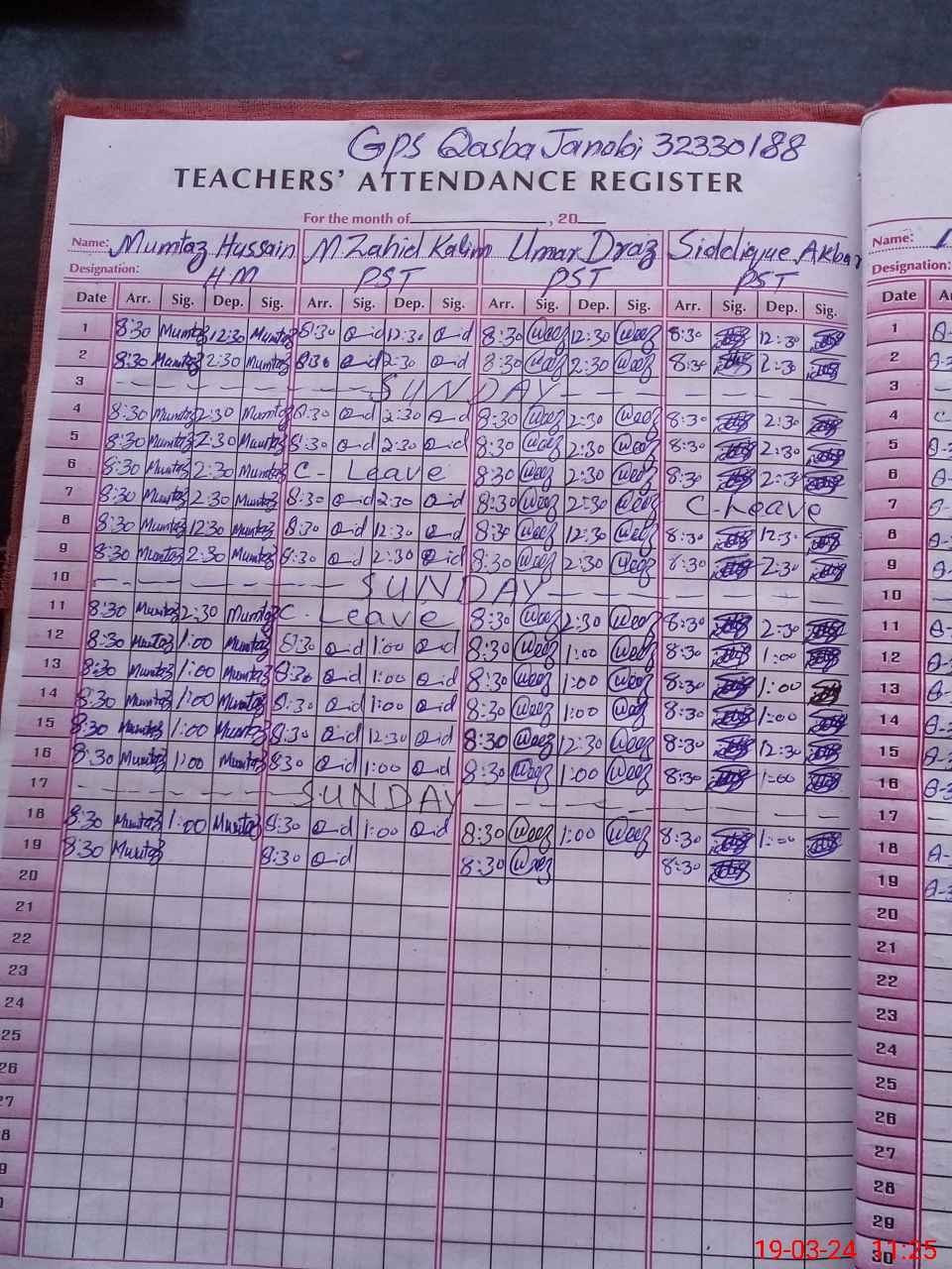 | Name: Mu**** Hu**** Designation: (School Headmaster's/Headmistress's) PST Phone/Cell Number: 03**** |