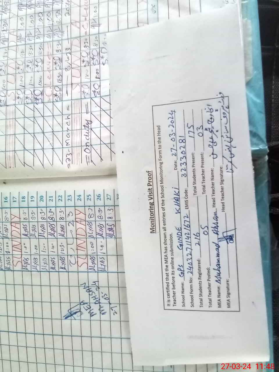 | EMIS Code: 32330281 | Name of School: GPS GINDI KHAKHI | |||