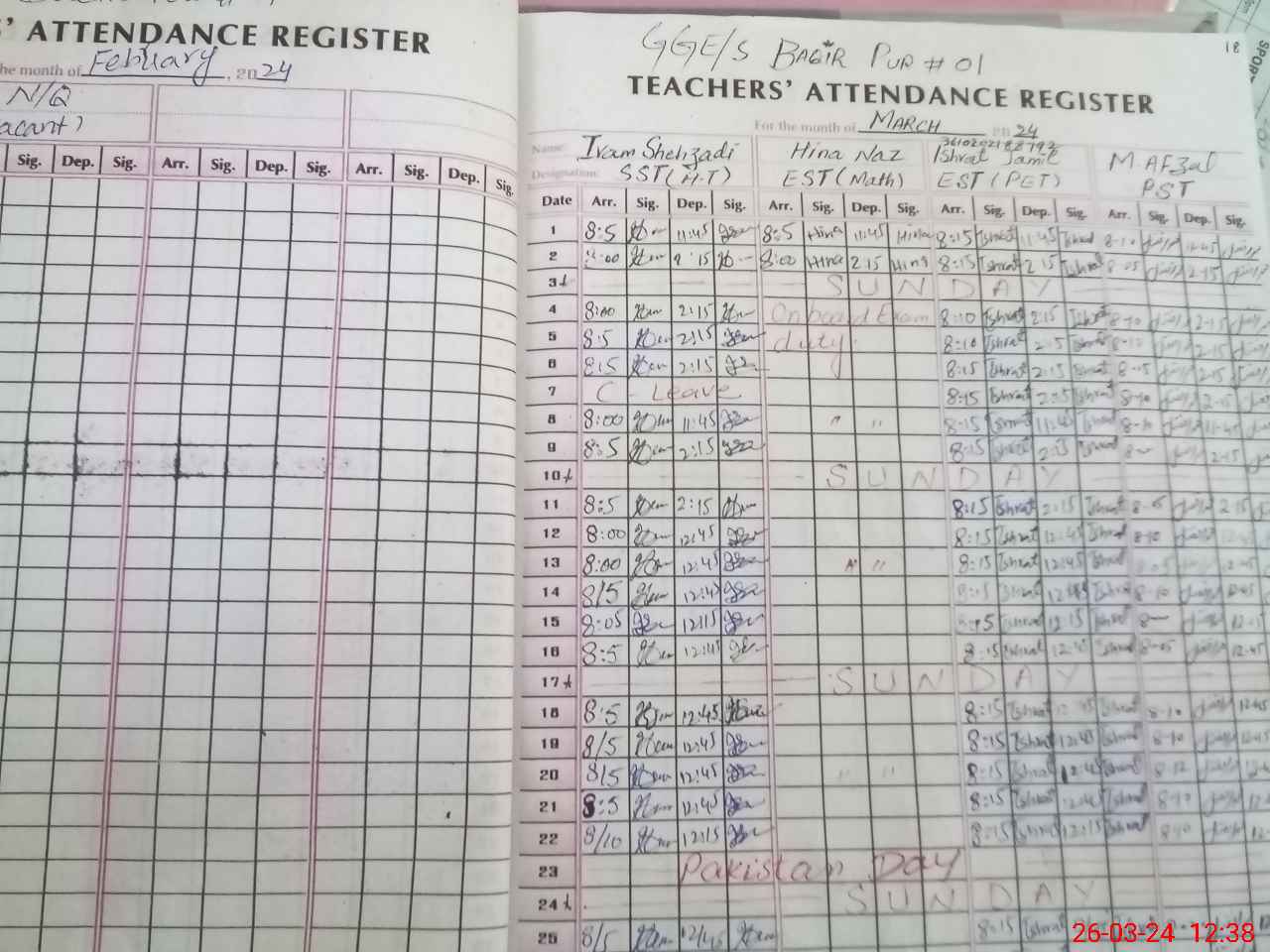 | 36**** | Hi**** Na**** | EST | Regular | 0 | 0 | 0 | 0 | 0 | 0 | 0 | 0 | 0 | Exam Duty |