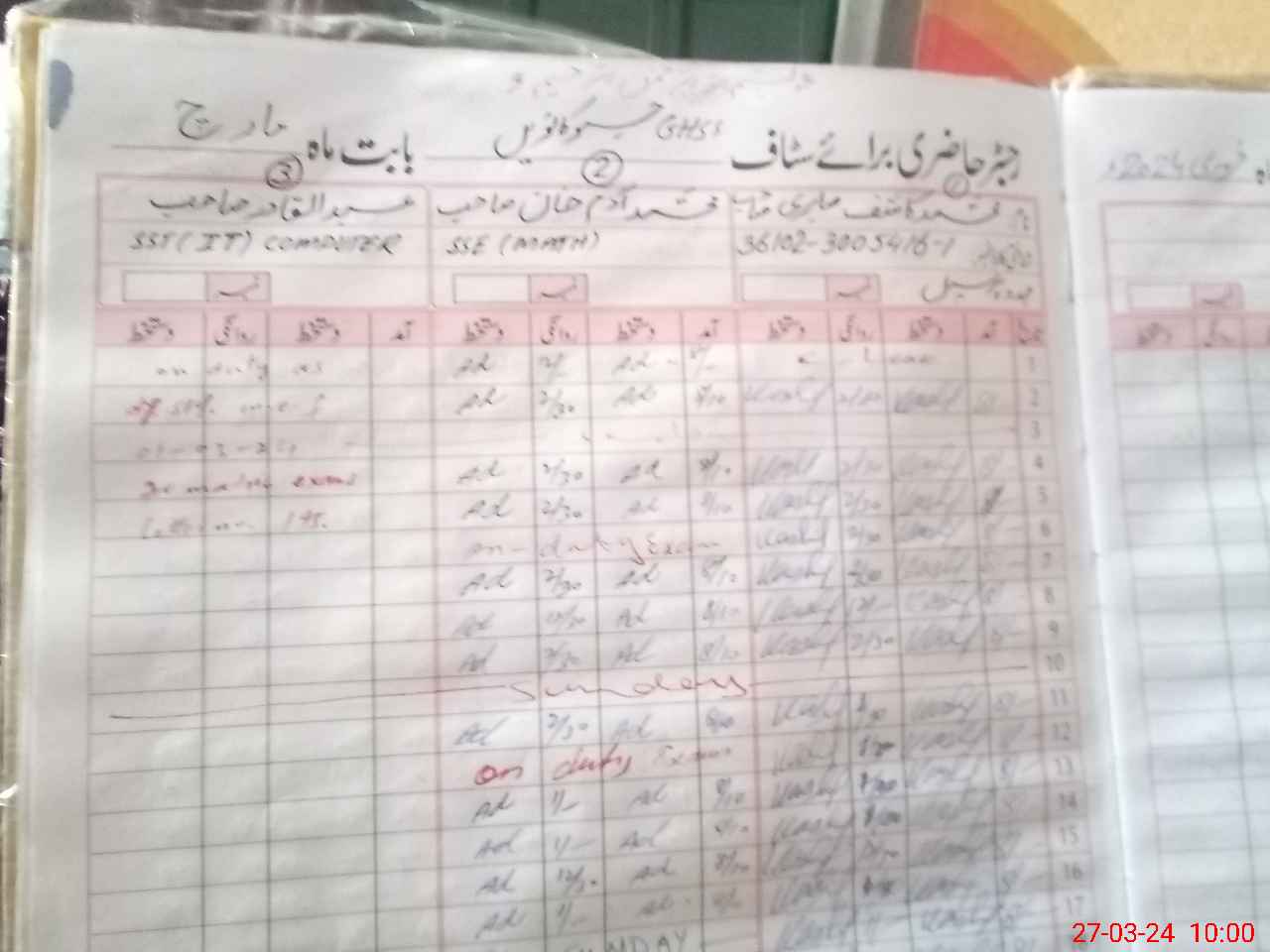 | 36**** | Mu**** Ra**** | 3 | 1 | 0 | 0 | 0 | 0 | 0 | 0 | 0 | 0 | 0 | Exam Duty |